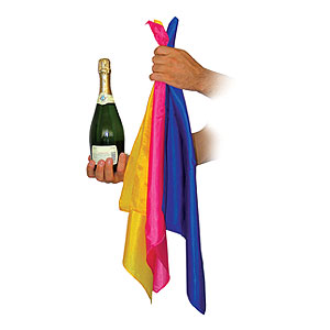 A magician throws three scarves in the air one at a time, showing they are all normal scarves. He then produces a bottle of champagne from them! A dove and a bouquet of flowers can also be produced.