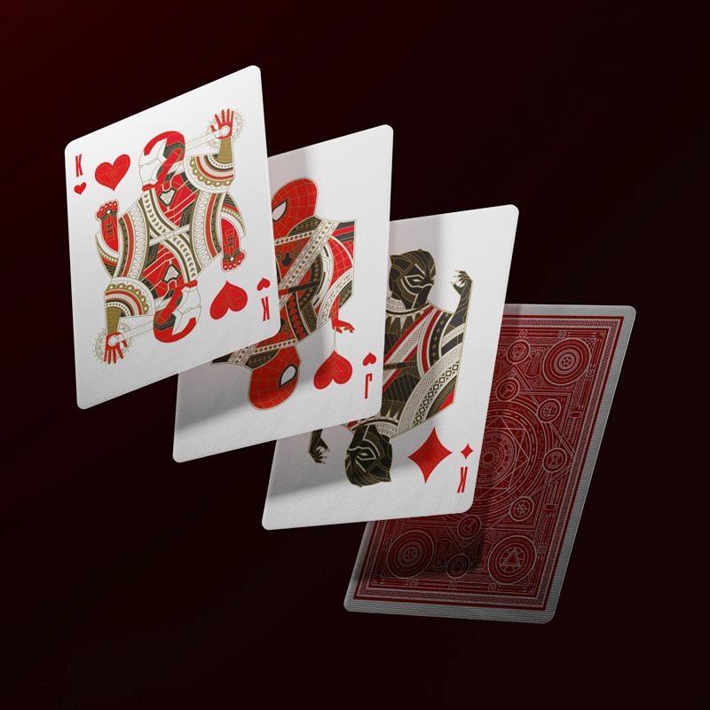 AVENGERS: Infinity Saga playing cards feature completely custom artwork in every aspect of the design, with the Aces, Jokers, box design, and court cards inspired directly by fan-favorite characters quintessential to the Marvel Cinematic Universe.