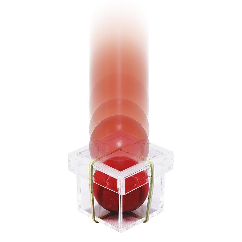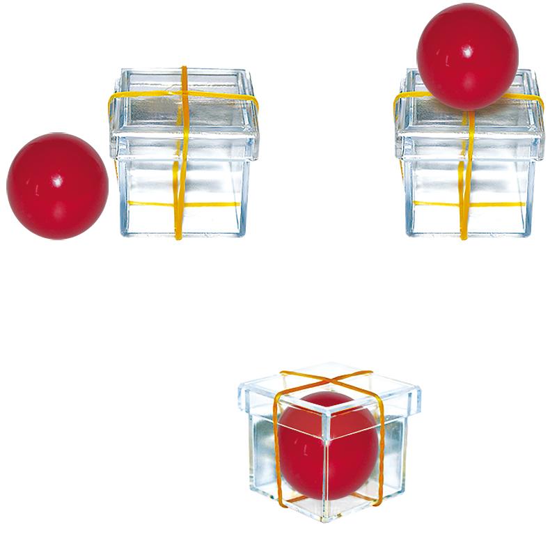 The magician shows a little ball and small transparent box well closed with two elastic bands. He places the box on the table and puts the ball on top of it, then covers everything with a silk. Now something magical and strange happens, as the audience will see the ball penetrate right through the lid of the closed box.