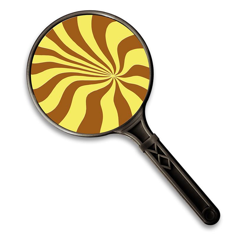 The magician introduces a paddle with a mesmerizing geometric design. As it moves in a circular motion, an eerie illusion occurs… a coin seems to appear on its surface! Then, the illusion becomes reality, and a genuine coin materializes. This process is repeated multiple times, producing various coins. For the finale, the magician shakes the paddle, causing the geometric design to visually distort, and then everything is handed out for examination.