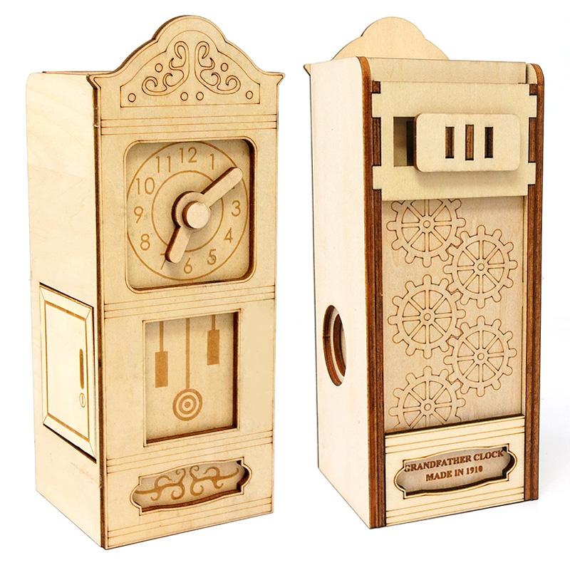 Fun, Affordable Puzzle Box. The range of secret escape boxes from Eureka offer a good entry point into the world of puzzle boxes and this is a fun design with the miniaturized Grandfather Clock, it begs to be investigated.