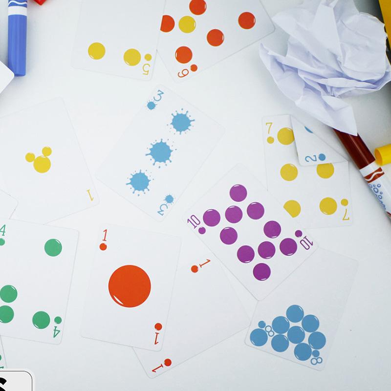 - Kolorowe, intuicyjne wzory – zamiast klasycznych znaków kart znajdziesz tu cztery intensywne kolory: niebieski, czerwony, zielony, żółty. Każdy kolor dostępny jest w wersji z numeracją od 1 do 10. Każde dziecko z łatwością rozpozna karty i chętnie weźmie udział w Twojej iluzji!