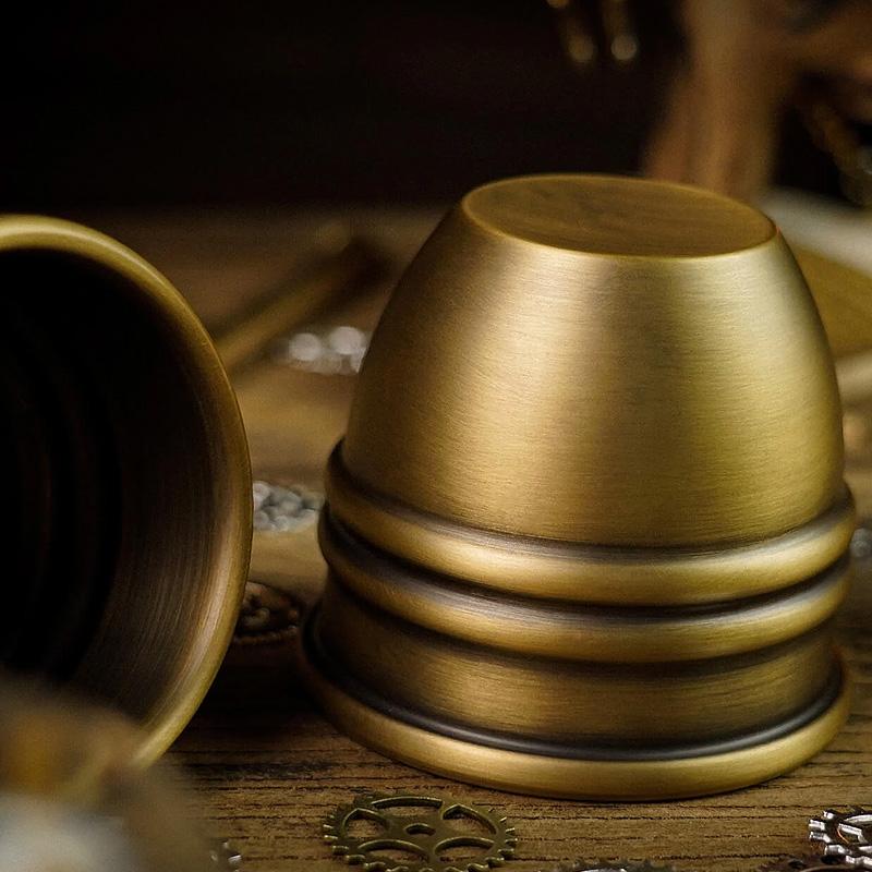We are proud to present our final version of the brass cups: The Artistic COMBO Cups and Balls Set. This chop cup version features new machining technology to conceal the gimmick and ensure that the three cups are identical. We have made several improvements to the details.