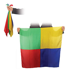 Cztery chustki 45 cm nagle zamieniają się w rękach iluzjonisty w jedną chustkę 90 cm!-100% czysty jedwab.-W zestawie kolorowa instrukcja napisana przez Duane Laflin.