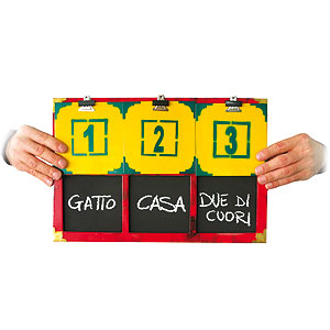The magician makes three predictions on a slate of three words or numbers selected by three members of the audience. These predictions are found to be absolutely correct! - The slate is cm 42 x 28 (in. 16,5 x 11). This allows you to use it on stage performances as well.