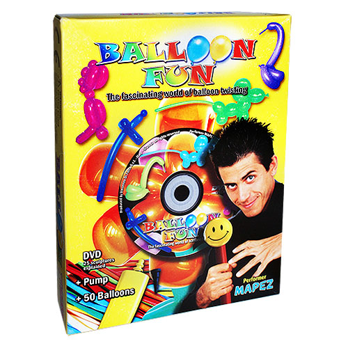 The set that is in this colorful box, will allow you to explore the fantastic world of balloon sculptures. Inside you will find a packet of 50 modeling balloons (260), a pump, a poster and an instructional DVD in Italian and English language (the presence of the DVD video allows even those who do not speak English or Italian to easily learn the various sculptures). Thanks to the easy and clear instructions that are on the DVD, you will be able to learn 25 sculptures + 2 bonus sculptures in the comfort of your own home. The DVD is hosted by Mauro Pezzola (Mapez), who will accompany you step by step into the wonderful world of balloon sculptures! - A great gift for anybody. - The box measures 20,8 (8,2”) x 26,9 (10,6”) x 3,4 (1,3”).