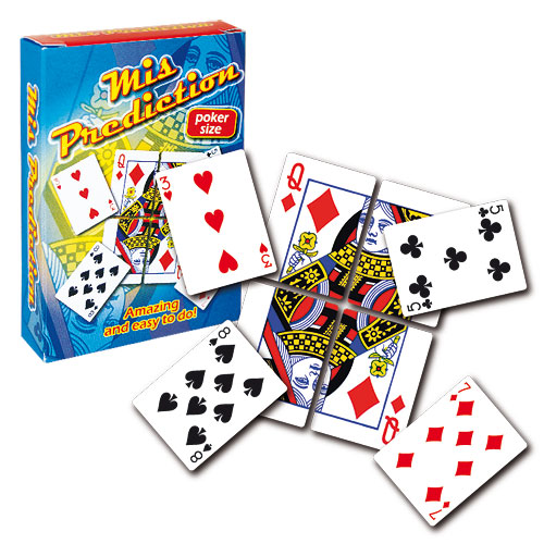Iluzjonista pokazuje kopertę z przepowiednią, i prosi widza o wybranie dowolnej karty. Następnie otwiera kopertę, z której wyciąga kartę, i kładzie ją na stole, mówiąc, że to ta wybrana przez widza. Nie ma jednak racji. Sytuacja powtarza się jeszcze 3 razy, iluzjoniście jednak za żadnym razem się nie udaje.Na koniec obraca on do góry nogami cztery karty leżące na stole, i widzowie widzą ogromną kartę przedstawiającą te wybraną wcześniej.Niesamowity, prosty do wykonania efekt.-Karty mają rozmiar pokerowy.
